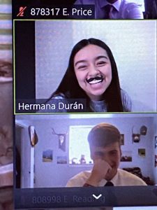 1. Elder Payne and Me 2. A little fun we had after finishing a Spanish wordsearch 3. The Elders decided to tuck in their ties as a kind of joke 4. My afternoon teacher playing an investigator and using mustache on zoom 5. One of the Elders actually fell asleep in class, only for a brief second