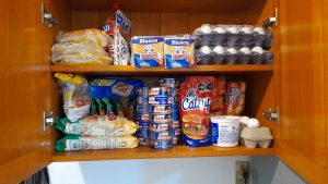 Quarantine Food Of course this whole COVID problem caused an uproar with the members who give us food every day. Well, the worst possible situation happened. -The members canceled our food, so we were on completely on our own -We had just given half of our emergency food to the new area (Telix) because their apartment literally had nothing -We didn’t buy very much food on p-day, just enough for a week of breakfasts So, we were pretty much ready to eat rice and beans the whole week and whatever else was in our emergency supply. However, we did ask the Bishop if he could bring us some meat. Instead, being the awesome bishop that he is, he brought us an entire pantry full of food! (pictures below). So yeah, we definitely cooked and ordered out a lot this week, haha.